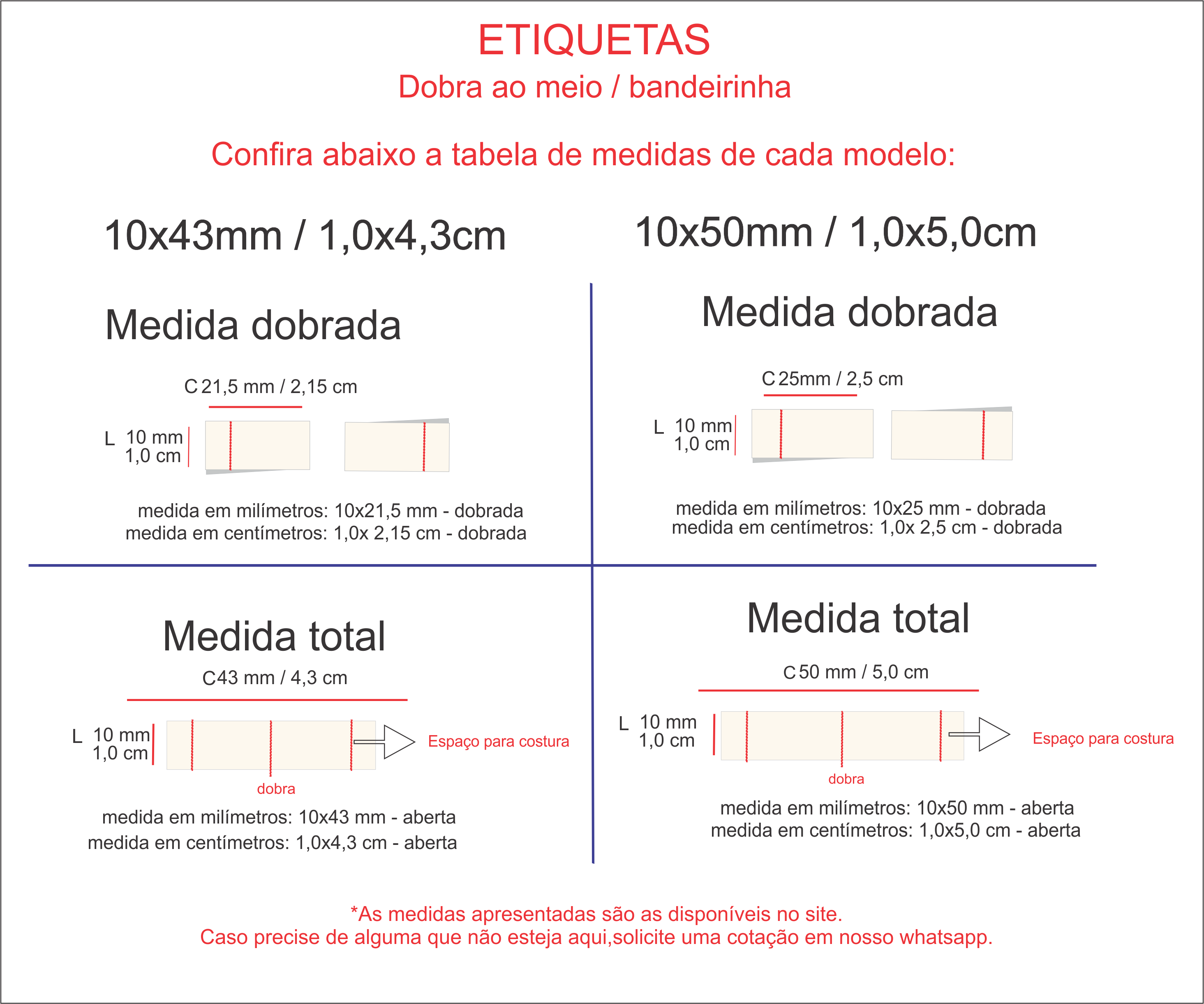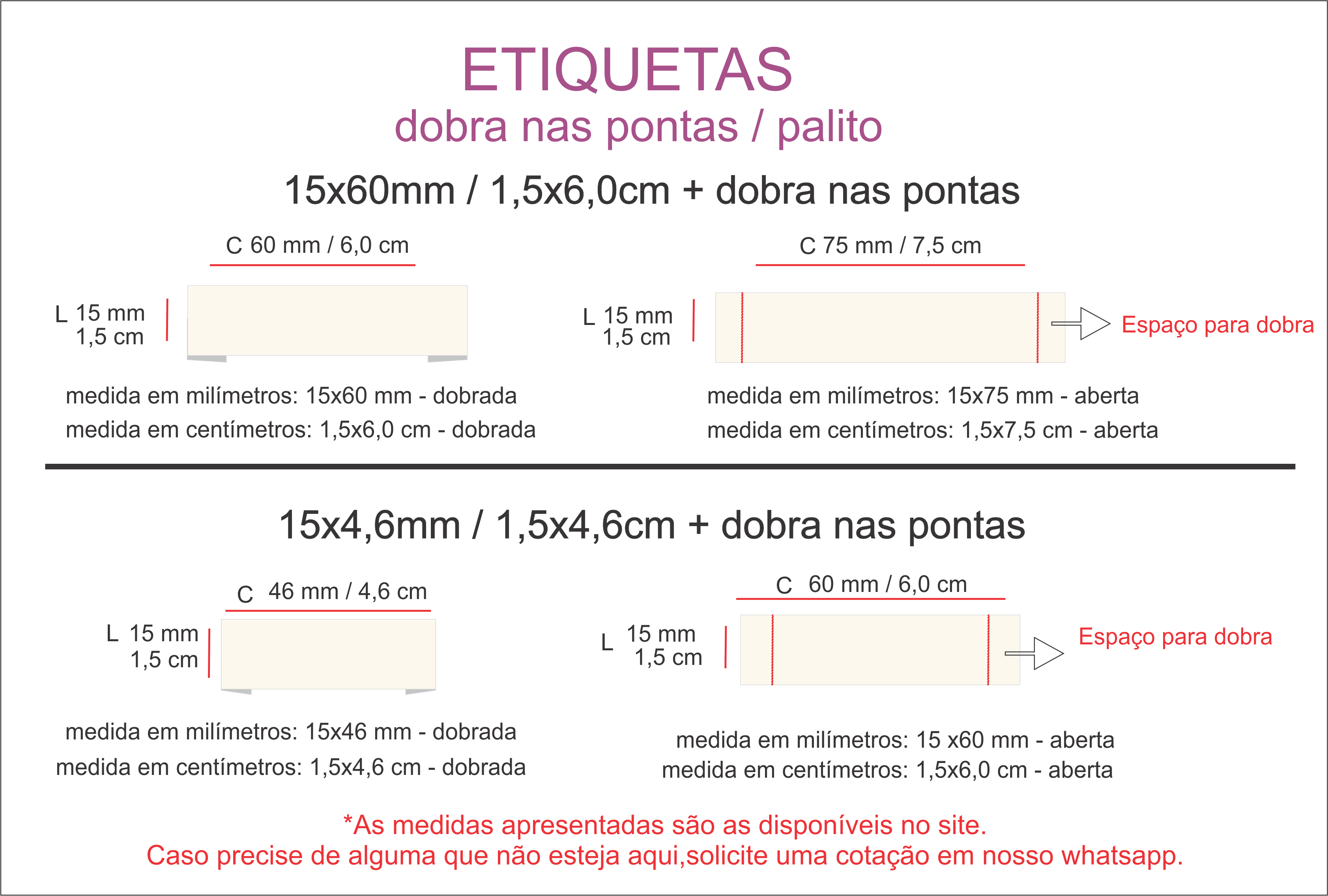 Etiqueta Bandeirinha / Dobra ao meio: